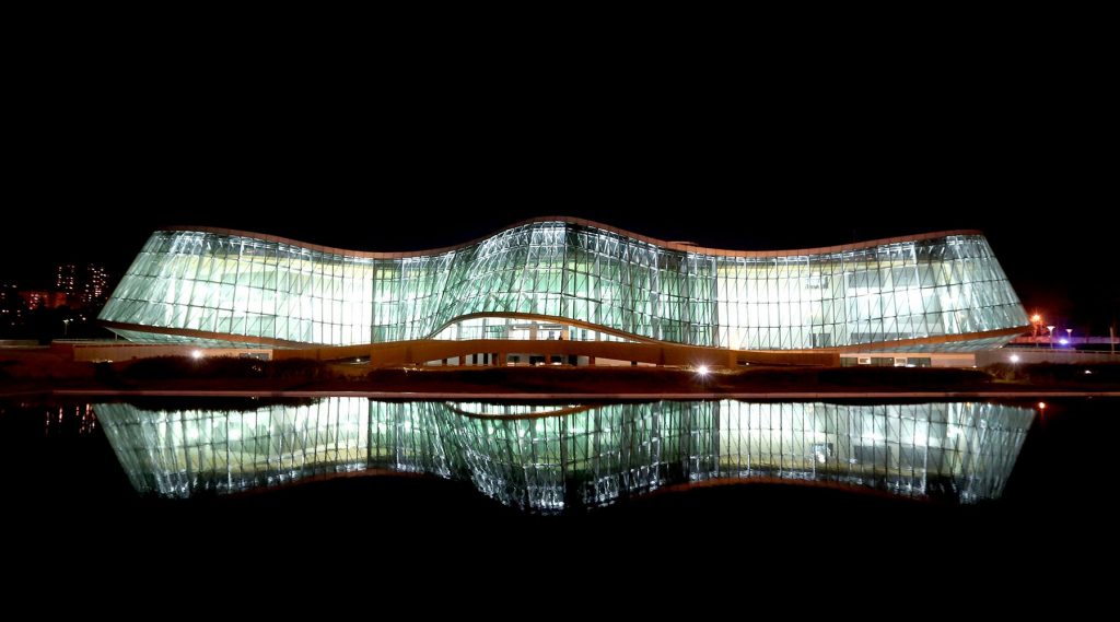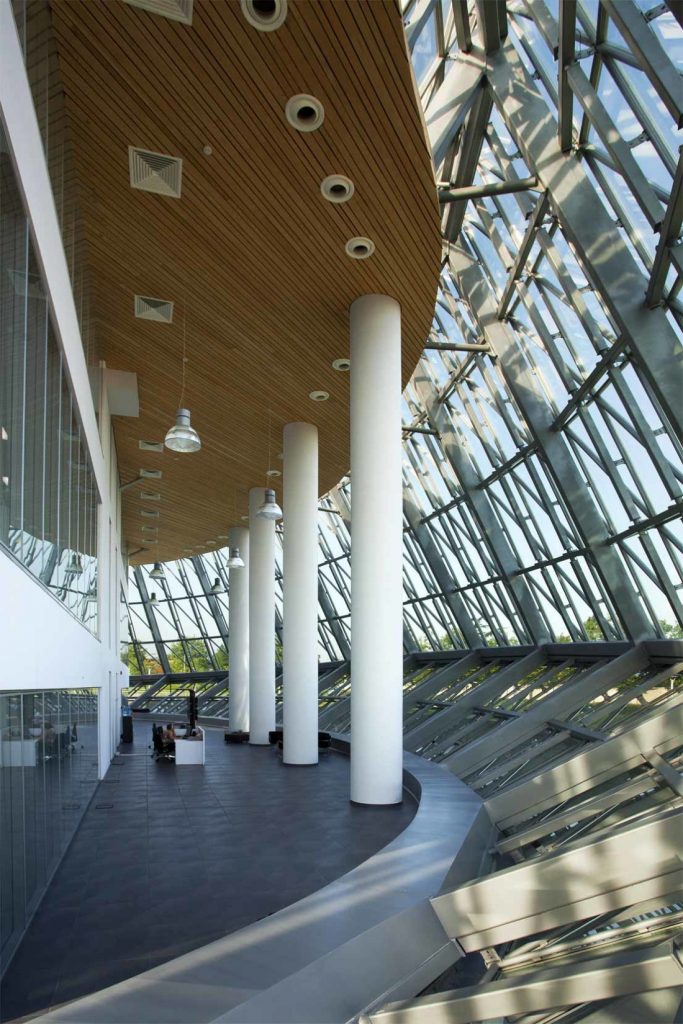 uilding was designed with linear forms, in a block located within a three-dimensional facade of steel and glass. Only the basement and ground floor were built with reinforced concrete upper floors and columns were made with a steel structural system.